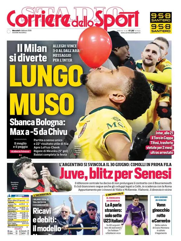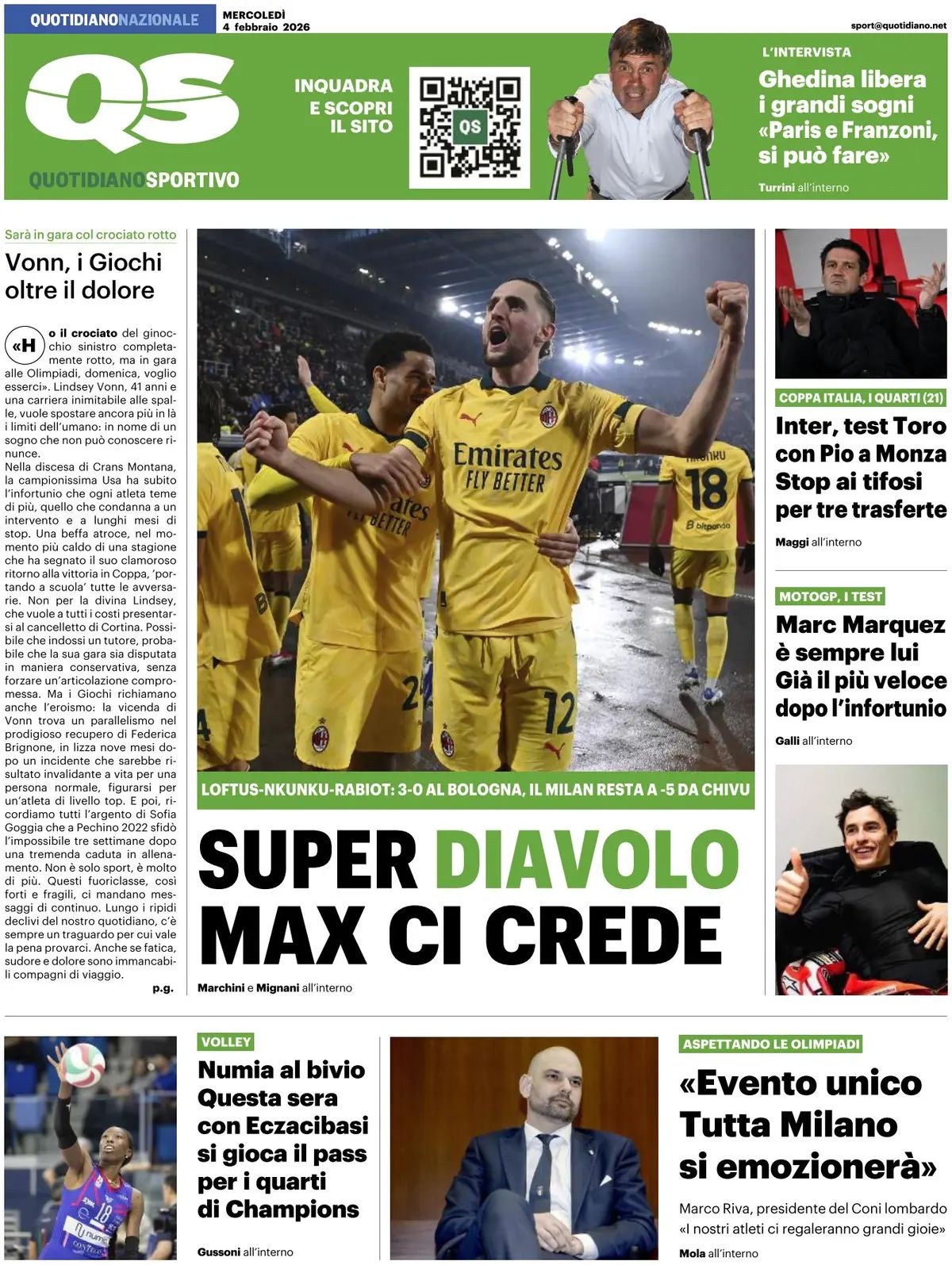 Queste le prime pagine dei principali quotidiani sportivi in edicola oggi, mercoledì 4 febbraio 2026.