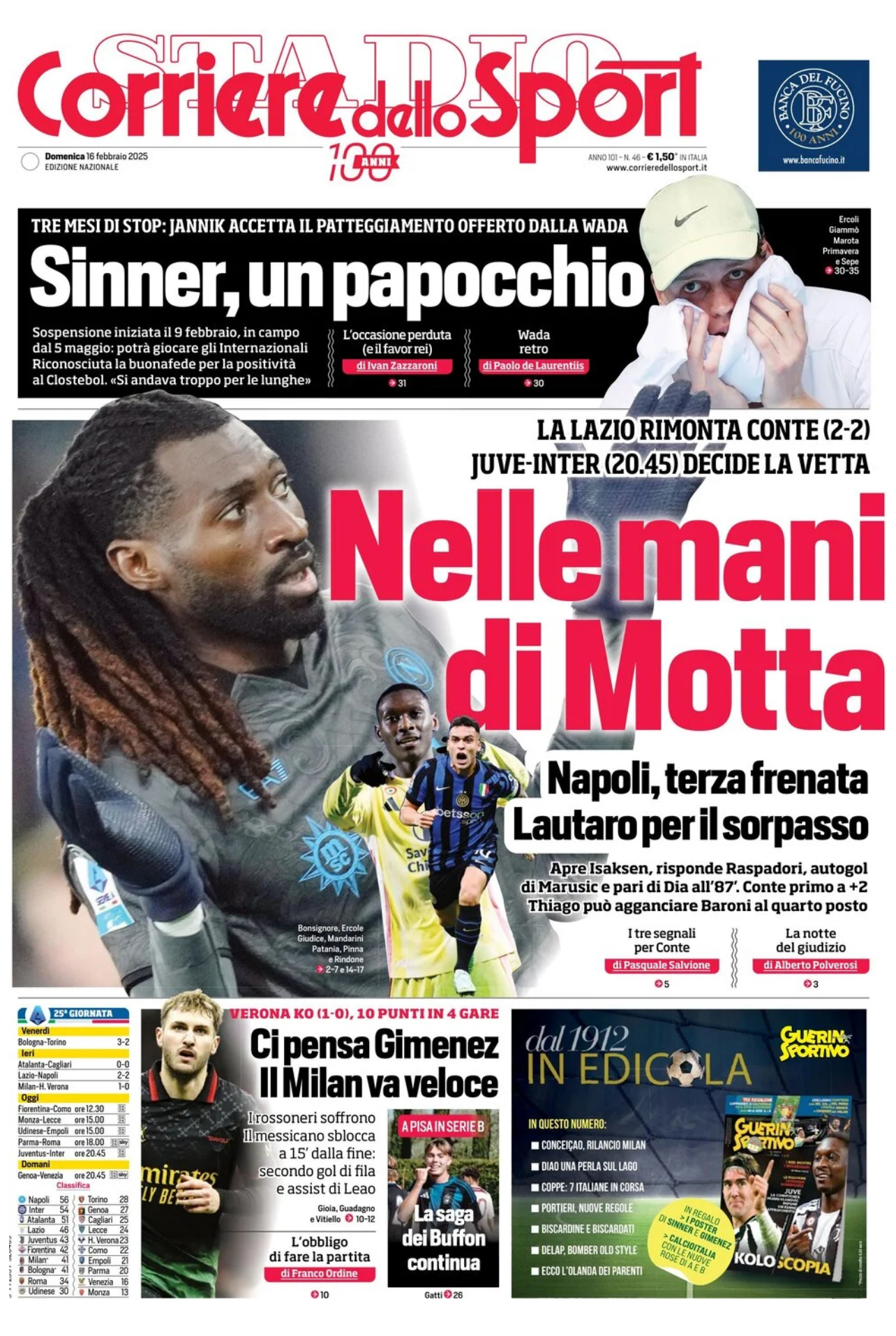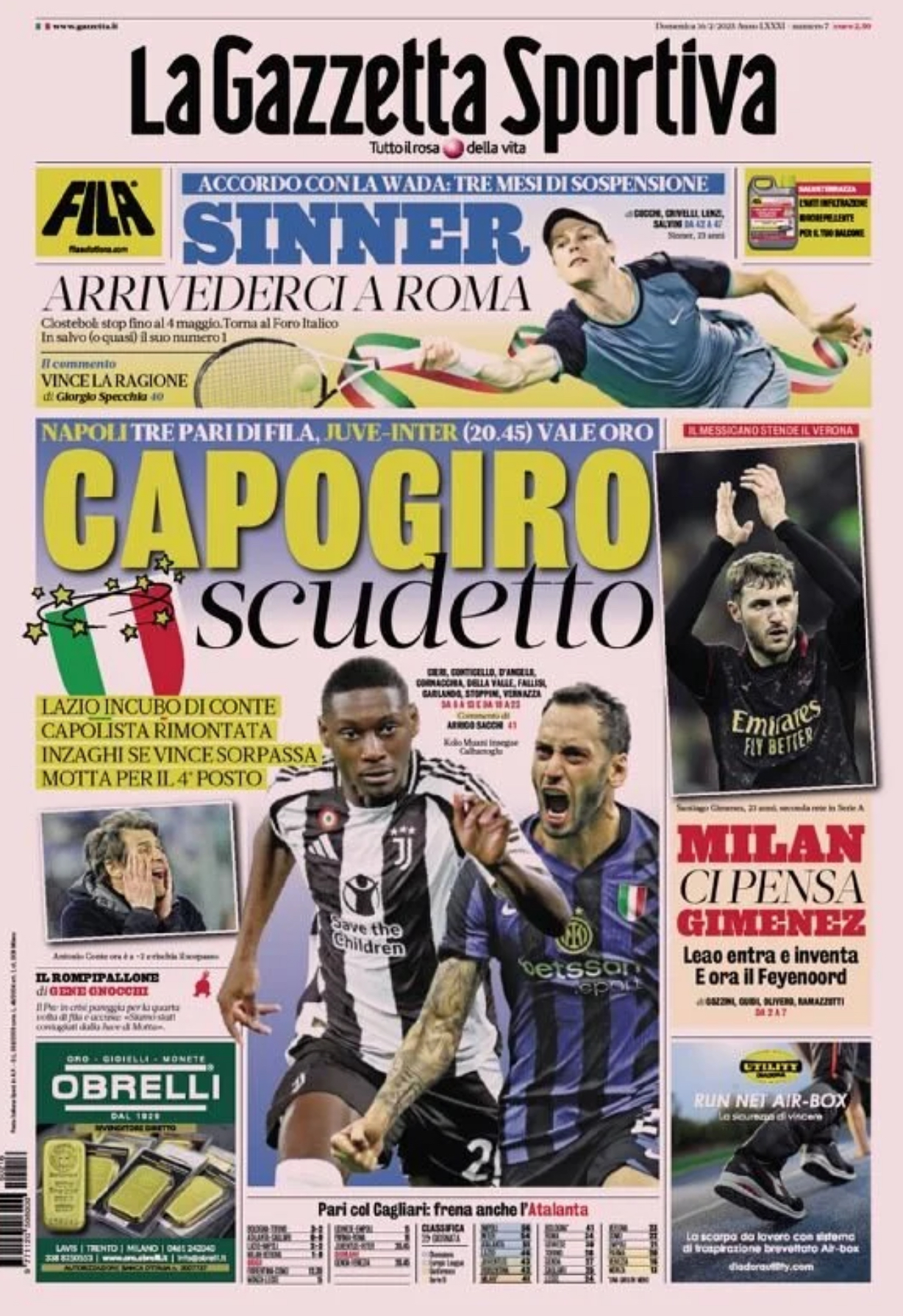 Queste le prime pagine dei maggiori quotidiani sportivi in edicola quest'oggi in Italia.